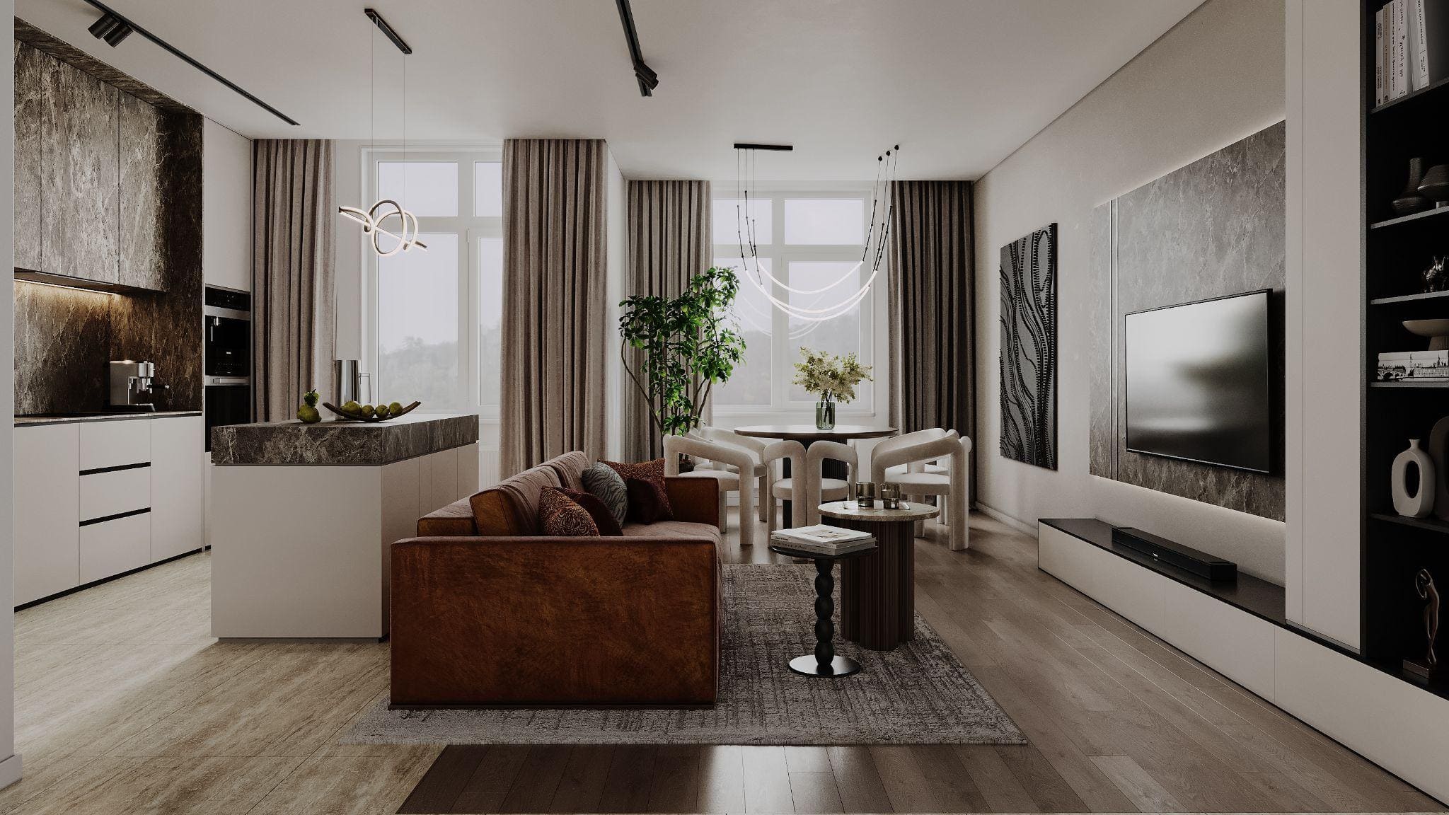 3D-візуалізація допомагає побачити майбутній простір ще до початку ремонту. Але в якісному проєкті вона не єсамоціллю. Її завдання — перевірити пропорції, роботу світла, поєднанняматеріалів і об’ємів.