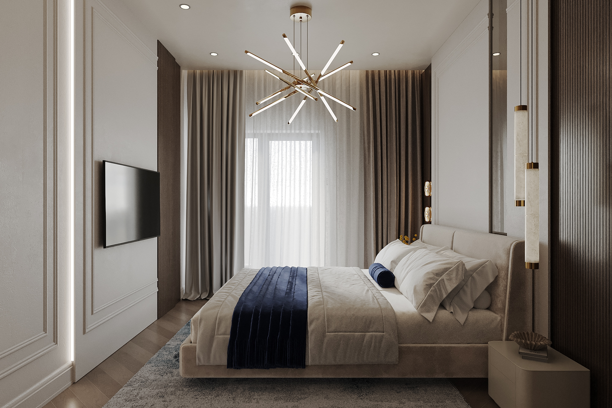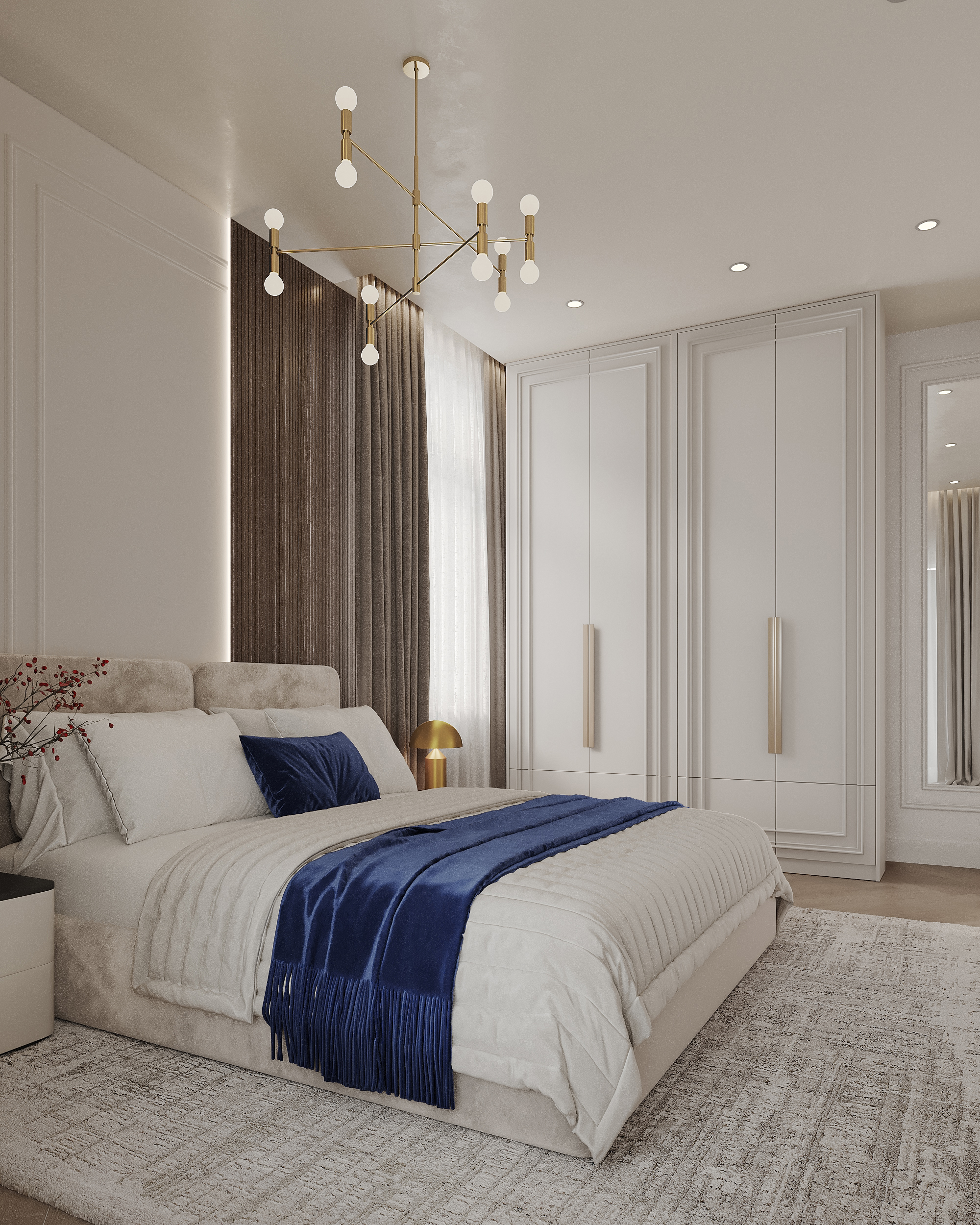 Всі три спальні різні, кожна відображає характер окремого члена родини — від вишуканоїелегантності батьків, до енергійного дизайну сина з геометричними акцентами таніжної естетики доньки з більш м’якими деталями та відтінками.